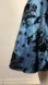 Stylish blue midi dress with black floral design. Features a graceful neckline and flowing skirt. Perfect for special occasions.