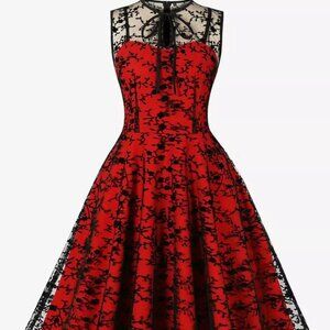 Voodoo Vixen Vintage Floral Flocked 50's Rockabilly Lace Overlay Dress Size S