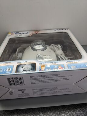 VTech Safe and Sound VM301 full color video and audio add on camera. Complete set with original box, manuals, and power adapter. Tested and working in excellent condition. This is an expansion camera and requires a compatible VTech parent unit such as VM321 or VM333. It does not operate as a standalone monitor. Features include two way talk back, infrared night vision, built in lullaby music playback, and up to 1000 ft range. Clean unit with no damage. Ideal for adding an extra room or angle to an existing VTech baby monitor system.