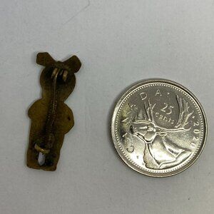 Signed : made in Czechoslovakia.....Enamel is broken around the mouth and on the belly....Very tiny brooch, 1 1/8" x 3/8"....