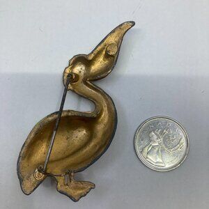 Vtg 1940 CORO pewter enamel pelican bird brooch