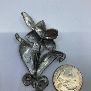 Vtg 1940 CORO ? pewter gold enamel flower bow brooch