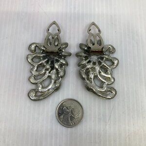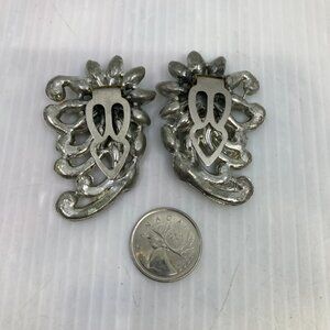 Vtg 1940s CORO pewter green flowers rhinestone fur dress clip brooch
