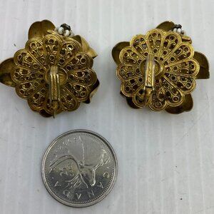 Vtg 1950 Original Robert ? brass milk glass flowers earrings