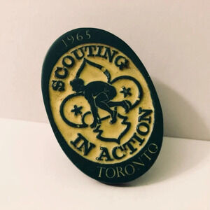 Vtg 1965 Boy Scout Canada Neckerchief Plastic Scarf Slider Scouting in Action
