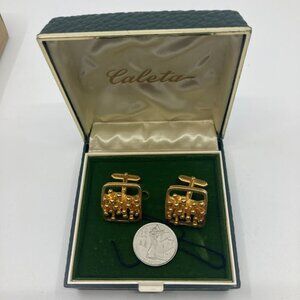 Vtg 1970 gold new deadstock original case modernist minimalist mens cufflinks