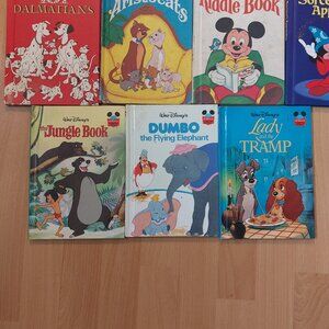 Dive into the enchanting realm of Disney with this delightful collection of 11 vintage 1970s hardcover books from the Wonderful World of Reading series. Each book offers a journey through cherished Disney tales, perfectly formatted for young readers aged between 4 and 12 years old. The lot features an array of stories that cover a broad range of themes, ensuring a treasure trove of inspiration and adventure for aspiring minds. The collection showcases a variety of narratives, all authored by Disney, with the intent to captivate and educate. The hardcover format ensures durability for eager hands and eager minds. Whether for a seasoned collector or a new enthusiast, these books stand as a testament to the timeless magic of Disney storytelling. N/S pet friendly home. Please visit my closet for similar items. Thx for looking.