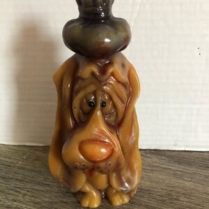 Vintage molded candle. In the shape of a basset dog looking sad. He is a cute little gift for the dog lover in your life. New not burnt. Good vintage condition- there are three small issues along the bottom but nothing that you can see from a distance.