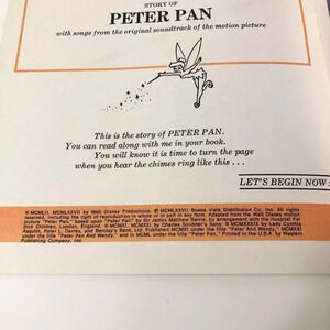 Vtg 1977 Walt Disneys Story of Peter Pan Book Only No Tape