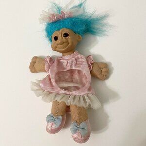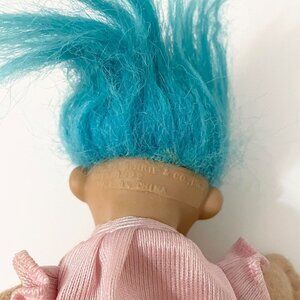 Vtg 1992 Russ Troll Doll Blue Hair Open Bag Stomach Fillable Gift Toy Set 6 Inch