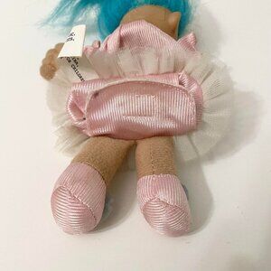 Vtg 1992 Russ Troll Doll Blue Hair Open Bag Stomach Fillable Gift Toy Set 6 Inch