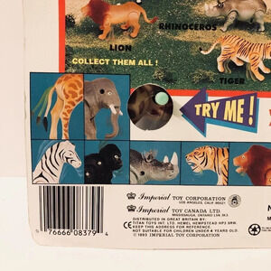 This toy is still in original packaging. It was never removed from packaging. There is creasing and wear to the packaging and the bubble has minor seperation by the word Giraffe on the front. Please see all photos for exact item. The tiger is approximately 5" tall.