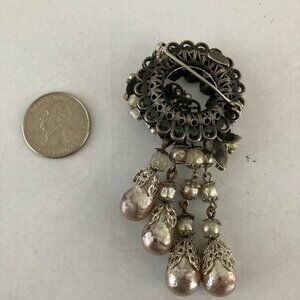 In good antique condition, but missing enamel on few faux pearl.....Very nice piece signed Original Robert. It measure 1 5/8" x 3 1/4".....Silver tone....