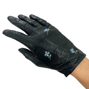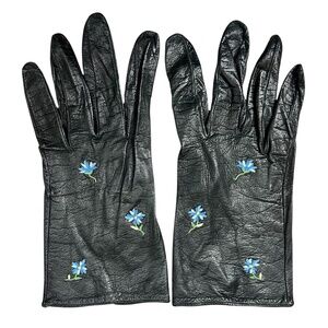 Vtg 50s Denise Francelle Paris handmade black leather embroidered short gloves 7