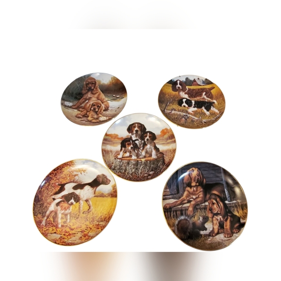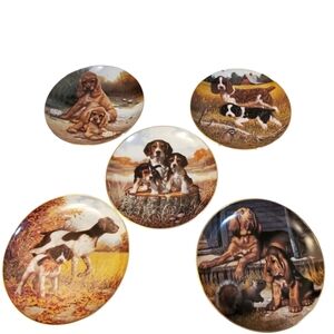 Authentic with certified plate # each plate. The lookout collections by Jim Lamb. Beautiful dogs features. The Hamilton collections. Limitted edition of fine porcelain plates. It can hang or with stand. 4pcs Spring hanging hooks for wall will be included.