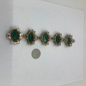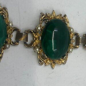 Vtg '60 SELRO SELINI ? chunky green lucite cabochon faux pearl bracelet