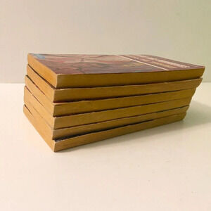 These books are pre-owned and in used condition. They are worn. The covers have creasing, some tears and wear. All the books have a stamp inside the first page or 2. There is creasing, staining, wear to the pages and some have tears, and wear on the binding. One book has the first page that is completely creased and another one that is missing the first page of the book but also has a part of the second page torn off. Some of the books are torn away from the binding. Please see all photos for exact books.