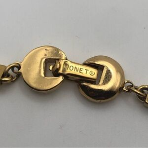 Super long block chain - folding clasp with ‘MONET’ Light signs of wear due to vintage age, thought thee is no fading of the gold tone colour overall condition is good! Featured on Page 161 of the reference book "Monet: The Master Jewelers" by Alice Vega