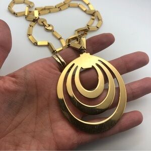 Vtg 60s Monet Gold Tone Huge Pendant Long Necklace 29” & 2.8” Pendant