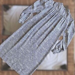 Vtg 60s blue & pale grey floral print dress & blazer co ord set