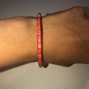 Vintage 1970s Brass and dyed pink bone inlay bangle,