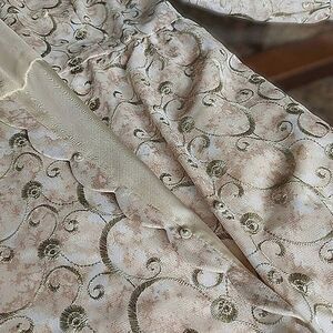 • Gold beige watercolour print with gold floral filigree embroidered pattern