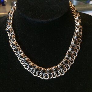 Vtg '80 Cleopatra collar choker onyx sterling silver 925 Taxco necklace 139 gr.