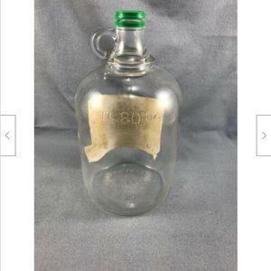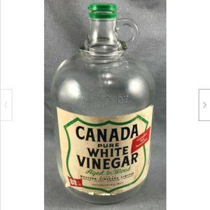 Vtg 80 oz Clear Glass Bottle Jug Jar Container Finger Loop Wht Vinegar Label 9"