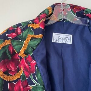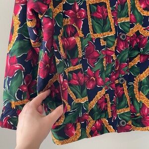 Vtg 80s 90s Funky Floral Oversized Bomber Jacket Sz 14 Lg XL Statement Festival