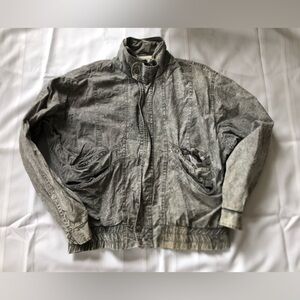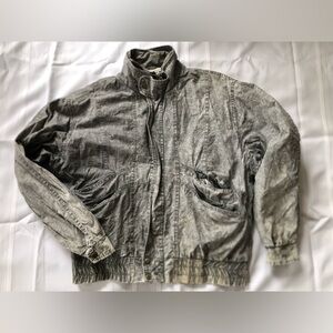 Vtg 80s Acid Wash Grey Denim Bomber Jacket