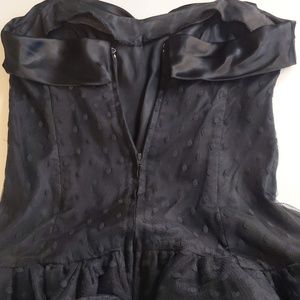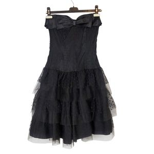 Vtg 80s Black Polka Dot Tulle Strapless Ruffle Tiered Mini Party Prom Dress