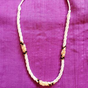 Vintage Vtg 1980's 80's Freshwater Pearl Rice Nugget White Black Gold Braided Beads Necklace