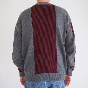 Vtg '80s Pacific Coast Gray Maroon Biggie Cosby Eclectic Knit Crewneck Sweater L