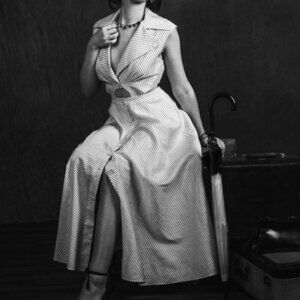 Style: Sleeveless, collared, button-down front, full A-line skirt