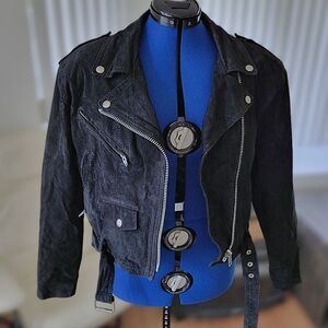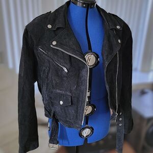 Vtg 90s Cosa Nova black nubuck leather belted moto jacket