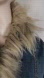 Denim jean style with shaggy faux fur trim, front snap closures and leather ties thay end just past the waist and then open below, two front slit pockets, lightly quilted lining. Freshly laundered.