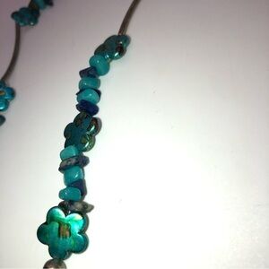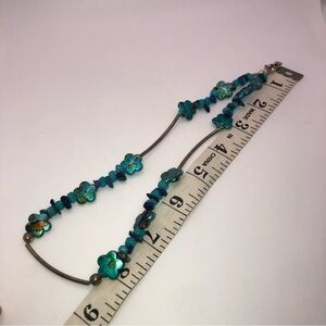 Vtg 950 Silver Lapis Chacedony & Dyed Flower Shaped MOP Beaded Necklace 17”
