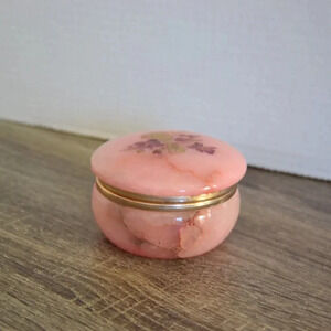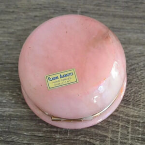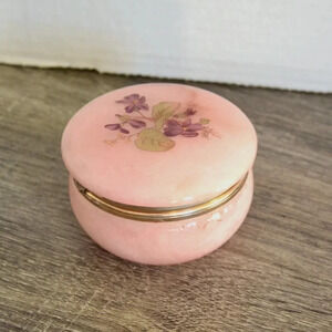 Pink stone (alabaster stone) with a purple flower design on the top.