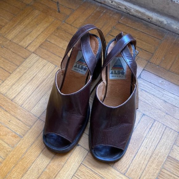 Vtg Aldo Brown Heeled Sandals in Size 36
