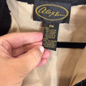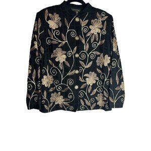 Vtg Alex Kim Black Textured Jacket Sparkly Buttons Beadwork Embroidery Floral M