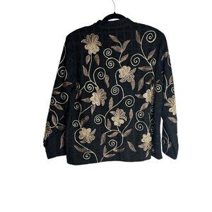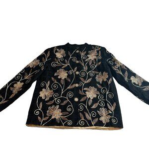 Vtg Alex Kim Black Textured Jacket Sparkly Buttons Beadwork Embroidery Floral M