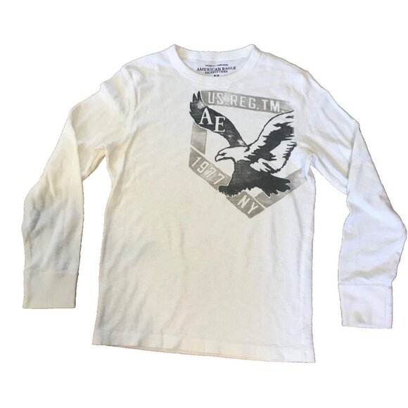 Vtg American Eagle Outfitter 1977 Athletic Fit Long Sleeve Cream Shirt Med Y2K