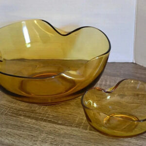 Vtg Anchor Hocking Amber Chip & Dip Set