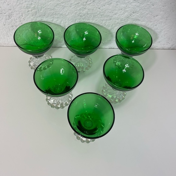 VTG Anchor Hocking Burple Inspiration Green Champagne/Tall Sherbet Glasses Set 6