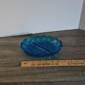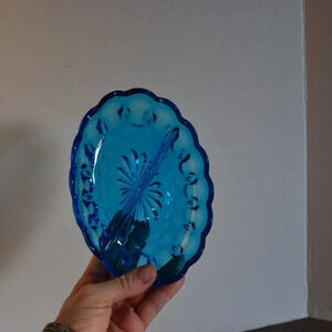 Colour is Laser Blue. Made by Anchor Hocking in the 1970's.