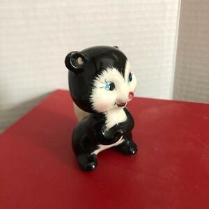 This charming skunk figurine is perfect for nature lovers. Its black and white design adds a playful touch to any space. Anthropomorphic design.