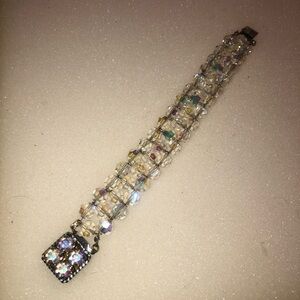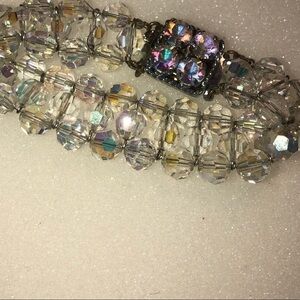 Vintage Aurora borealis glass crystal bead bracelet w sliding clasp. Measures approx 7”.