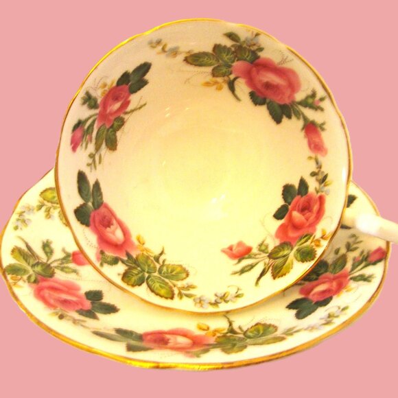 Vtg Aynsley teacup & saucer bone china with a wreath of pink of roses England