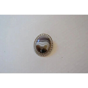 Gorgeous banded stone brooch which also doubles as a pendant for a necklace. Chain included. Both pieces are unmarked and therefore unknown content. Also since I cannot seem to find another, I don't have an actual date for this piece, so if you know please let me know!