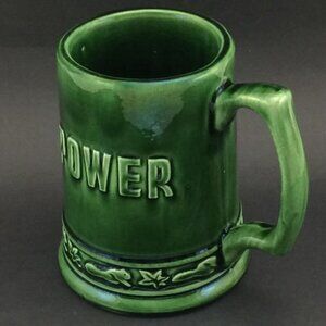 Vtg Beauce Rolls Royce Stein Mug Tankard Quebec Pottery Green Beauceware Power